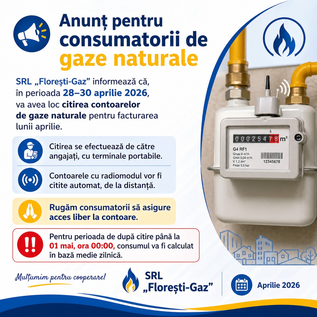 Stimaţi vizitatori ai saitului SRL«Floreşti-Gaz» !